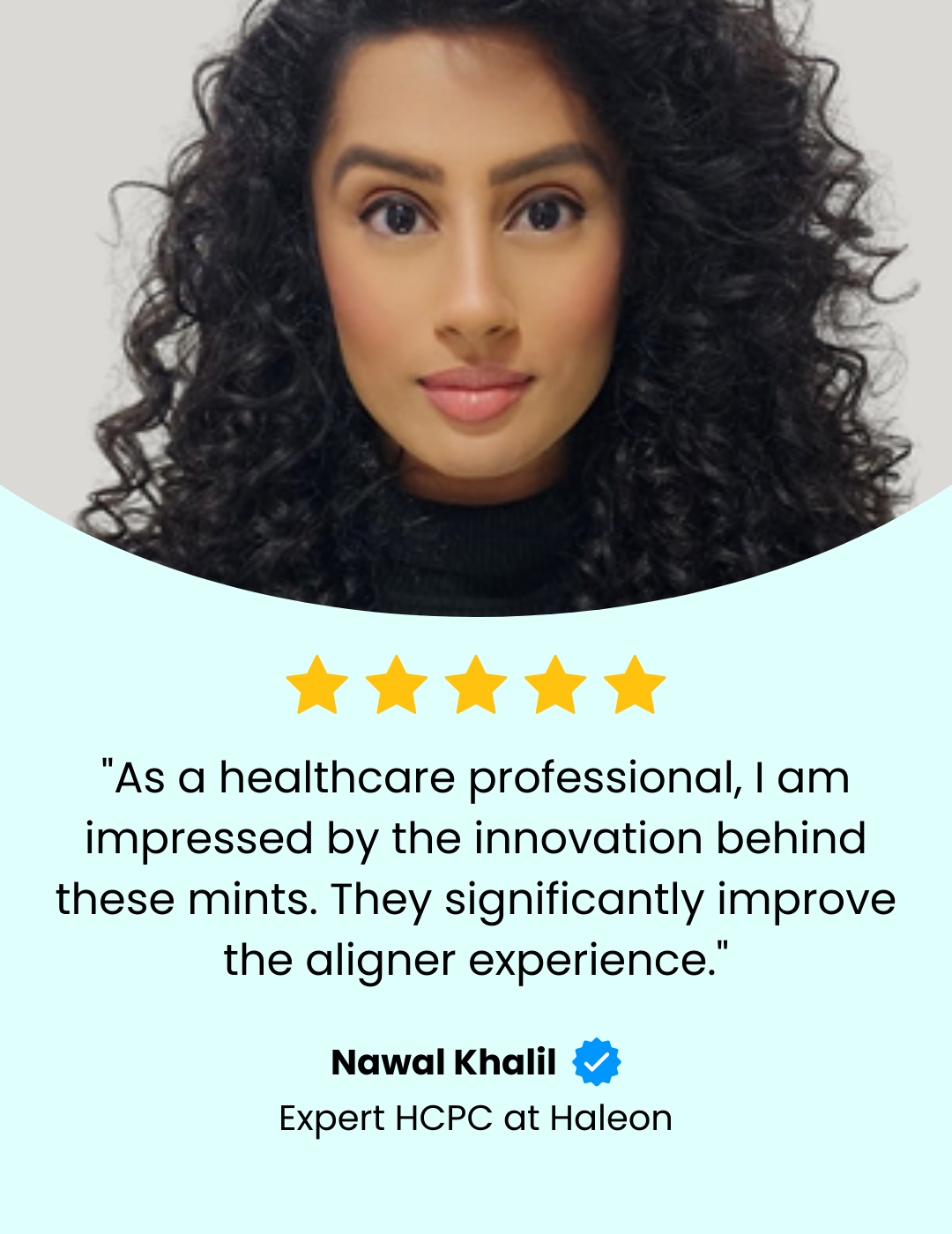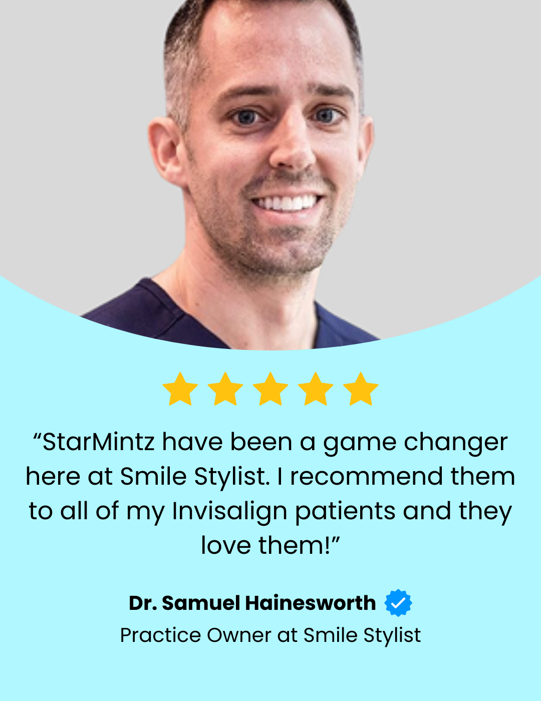 StarMintz boost blood flow to your gums, helping to ease the pressure and discomfort caused by clear aligners. Feel more comfortable, stay on track with your treatment, and smile without the soreness.
